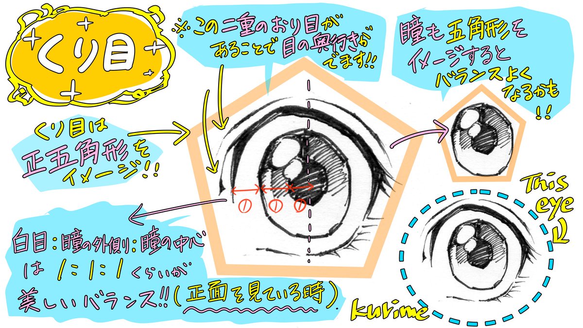 イラスト初心者でもわかる目の描き方講座イラスト くり目 タレ目 つり目 がすごいわかる Togetter